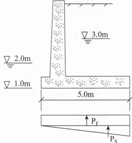单选题 年Ⅰ 下图为某挡土墙底板扬压力示意图。该挡土墙底板单位宽度的扬压力为( )KN(水的重度γ=10kN/m3)。